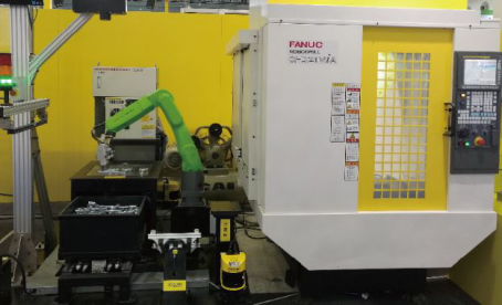 协作机器人机床上下料 l 新款协作机器人CR-7iA无需安全围栏,可人机协同作业,提高系统柔性 l 搭载iRVision视觉技术,CR-7iA能自动拾取料框中散堆的工件并准确上料到ROBODRILL的夹具中 l 通过伺服门技术,ROBODRILL可配合机器人实现0.5秒的超短开闭门时间