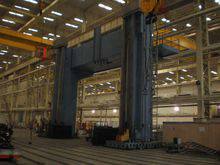 龙门铣床的外形与龙门刨床相似,区别在于它的横梁和立柱上装的不是刨刀刀架而是带有主轴箱的铣刀架,并且龙门铣床的纵向工作台的往复运动不是主运动,而是进给运动,而铣刀的旋转运动是主运动。 结构龙门铣床由门式框架、床身工作台和电气控制系统构成。 门式框架由立柱和顶梁构成,中间还有横梁。横梁可沿两立柱导轨作升降运动。横梁上有1~2个带垂直主轴的铣头,可沿横梁导轨作横向运动。两立柱上还可分别安装一个带有水平主轴的铣头,它可沿立柱导轨作升降运动。这些铣头可同时加工几个表面。每个铣头都具有单独的电动机(功率最大可达150千瓦)、变速机构、操纵机构和主轴部件等。 卧式长床身上架设有可移动的工作台,并覆有护罩。加工时,工件安装在工作台上并随之作纵向进给运动。 龙门铣床还有一些变型以适应不同的加工对象。 ①龙门镗铣床:横梁上装有可铣可镗的铣镗头